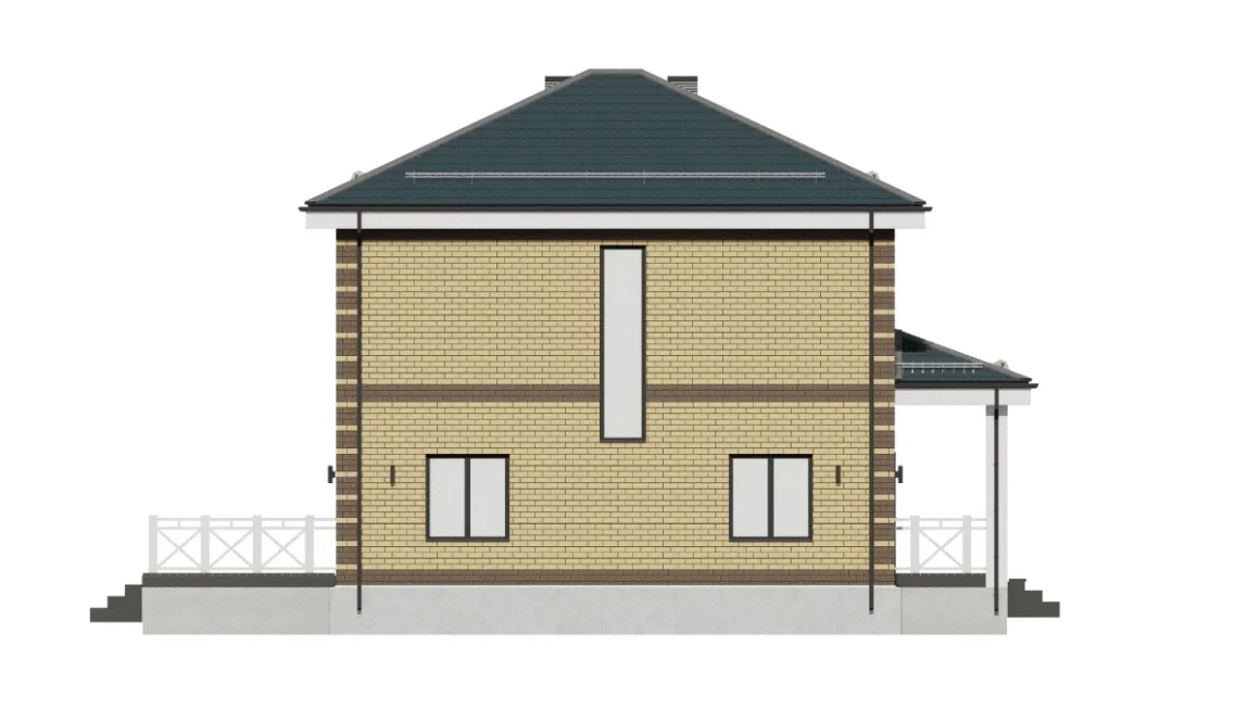 О проектеЭтот двухэтажный особняк площадью 160м² создан для тех, кто выбирает бескомпромиссную надежность кирпичного домостроения.