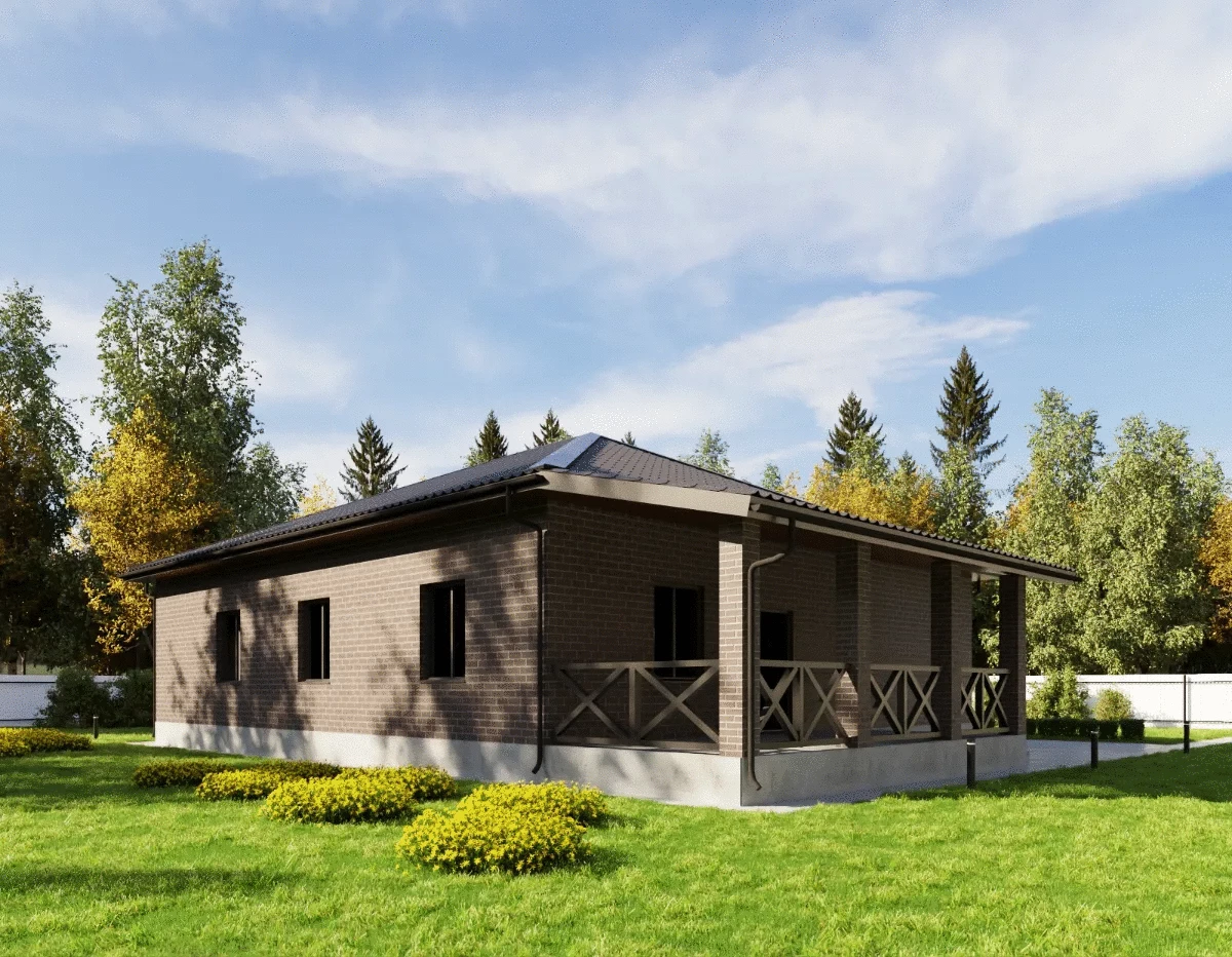 Стены: Энергоэффективные газоблоки с комбинированной отделкой. Фасад выполняется из долговечного облицовочного кирпича в сочетании с элементами декоративной штукатурки.